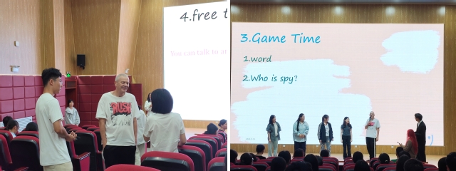 英语角活动现场互动氛围热烈。开场以“Confidence unlocks the limitless potential within me”为主题展开讨论,同学们结合自信对个人成长的推动力用英语发言,并与老师深入探讨;随后的热场自我介绍环节,大家用英语展示个人特点,快速拉近彼此距离。趣味游戏互动环节,“飞花令”“谁是卧底”等英语游戏让同学们在欢乐竞技中提升英语应用能力;自由分享环节,大家围绕兴趣爱好、文化差异等话题交流,在与老师们的互动中进一步锻炼英语表达。