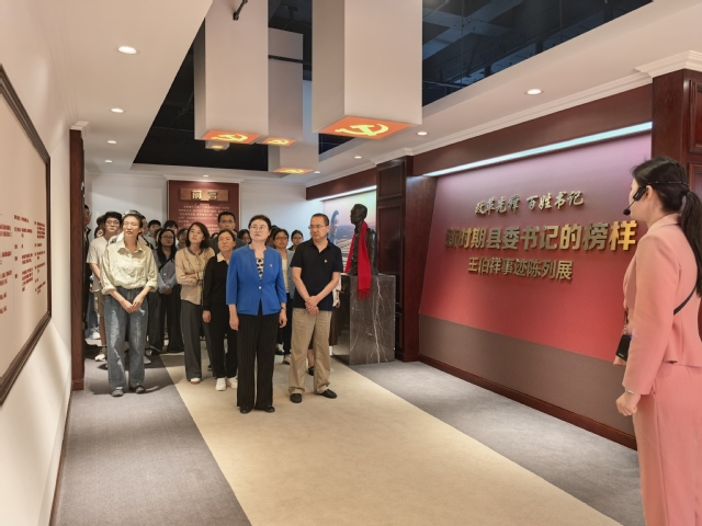 进入教育馆,师生党员首先面对党旗庄严宣誓,再一次重温入党誓词,进一步坚定理想信念。随后,在讲解员带领下,师生党员走进王伯祥事迹陈列馆接受党性教育。馆内以时间为线,通过图文、实物与影像展陈,清晰呈现“新时期县委书记的榜样”王伯祥同志扎根寿光的奋斗历程:为破解农业难题,他深入田间推广冬暖式蔬菜大棚技术,在全国掀起“绿色革命”;建设蔬菜批发市场,破解蔬菜供销难题,让“寿光蔬菜”走向全国乃至全世界;为改善民生,他牵头开发寿北荒滩,使不毛之地成为“粮仓”“银山”;推动企业改制,为寿光工业发展筑牢根基……党员们在鲜活史料中,真切感受他“把百姓放心里”的为民情怀和“大胆试,天塌了,我顶着!”的改革担当,深刻体会一名党员干部扎根基层、务实为民的初心。