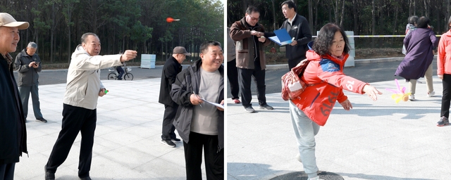 运动会设置定点投篮、飞镖、篮球碰瓶、趣味钓瓶、夹玻璃球、套圈等一系列贴合老同志身心特点的趣味的项目,将“我运动、我健康、我快乐”的生活理念融入每一个环节。赛场上,老同志们精神矍铄、身手敏捷,精准的投篮、灵巧的夹球等动作赢得阵阵喝彩。