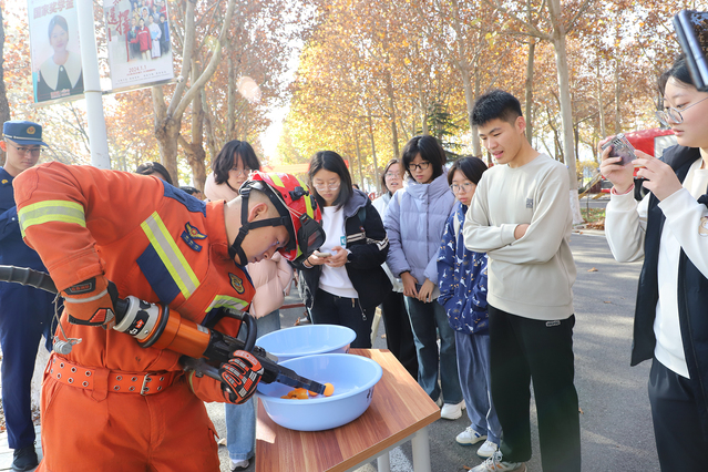 今年11月是第34个全国消防宣传月。为广泛发动全校师生关注消防、参与消防,切实增强广大师生的消防安全意识,11月13日,学校保卫处联合潍城区消防救援大队、潍坊市森林消防大队开展消防宣传月活动。副校长成敏、潍城区副区长曹建国、潍城区消防救援大队负责同志参加活动。