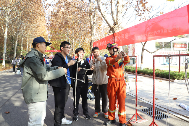 活动围绕“全民消防、生命至上—安全用火用电”主题,设置了消防装备展示和互动体验环节。在消防装备展示环节,消防员向广大师生讲解各类防护装备以及灭火救援、侦检、破拆、救生等器材,让广大师生近距离接触消防“利器”。在互动体验环节,大家通过参与趣味游戏、亲自参与救援设备操作、体验烟雾环境中疏散逃生等,掌握消防安全隐患排查、扑灭初起火灾以及应急疏散等安全知识和应急技能。整个活动将趣味游戏、沉浸式体验与安全知识和技能深度融合,吸引了1000余名师生参与。