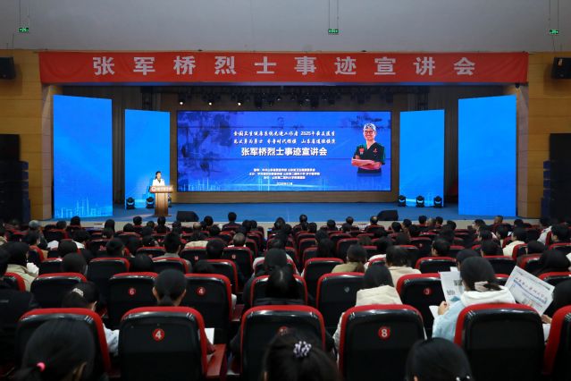 此次宣讲系张军桥烈士事迹宣讲会巡回宣讲第六场。济宁医学院教职工代表、附属医院医护员工代表、共产党员代表和学生代表500余人现场聆听。