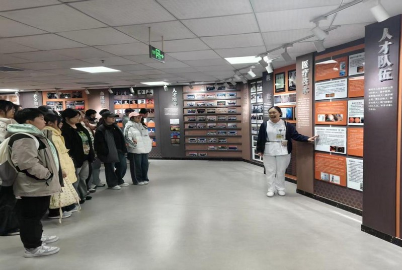 活动中,眼科中心为同学们带来了一场内容翔实的专业启蒙课。老师们结合临床案例与行业发展,系统梳理眼科中心的发展历程与重大突破,生动讲述眼科学发展史,逐一介绍各类眼科检查、诊疗设备的功能原理与操作规范,将抽象的专业知识转化为直观的实物讲解。最后,全体师生在眼科中心门前整齐列队,共同庄严宣读“德之光华,取之明道”的科室理念,洪亮的声音传递出对医学职业的敬畏与追求。