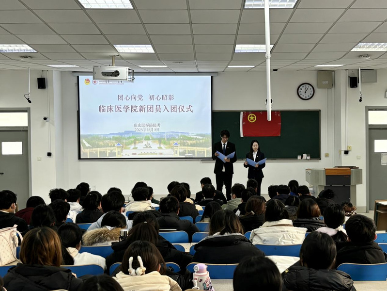 为加强学院共青团组织建设,引导广大青年坚定理想信念、弘扬爱国精神,临床医学院于近日举行2025年下半年新发展团员入团仪式。学院党委副书记刘刚、团委书记、各年级团总支书记、优秀团员代表和全体新发展团员参加。