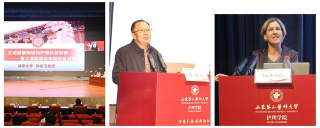 教育部高等学校护理学类专业教学指导委员会秘书长、北京大学孙宏玉教授以“主动健康领域的护理科技创新”为题;唐四元教授以“多学科融合的护理研究之路”为题;香港理工大学护理学院院长Janelle Yorke教授以“护理中的人工智能:护士与患者的互动”为题;韩国老年护理学会会长、忠南国立大学Myonghawa Park教授以“数字医疗技术赋能知情决策与健康行为”为题;教育部高等学校护理学类专业教学指导委员会副主任委员、大连大学安力彬教授以“人工智能在课程建设中的应用探索”为题;上海纽约大学教务长吴蓓教授以“与AI同行:探索口腔健康如何促进健康老龄化”为题;韩国忠南国立大学Sukhee Ann教授以“孕产妇健康评估中的移动通讯技术应用”为题;教育部高等学校护理学类专业教学指导委员会委员、全国医学专业学位研究生教学指导委员会护理分委员会委员、天津医科大学赵岳教授以“AI赋能的护理教育变革”为题;德国埃尔朗根大学医院医学照护研究中心主任Elmar GräBel教授以“MAKS:轻中度痴呆症患者的多模态心理社会疗法:科学成果与机器人在MAKS中的应用”为题,分别进行了学术汇报与分享交流。