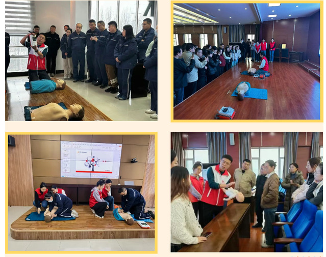 12月2日,志愿服务队走进潍坊山水水泥、大洋泊车两家企业,把急救课堂搬到车间一线。指导教师姚福旺用真实案例拆解CPR按压要领、AED使用流程,学生志愿者一对一手把手指导实操,纠正按压角度、电极片粘贴等细节。“学会这些技能,关键时刻能救自己、帮他人!”职工们收获满满。