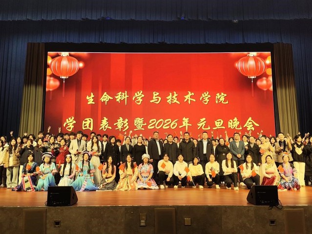 近日,生命科学与技术学院“学团表彰暨2026年‘蛇跃辞年,马奔启岁’元旦晚会”在文体中心报告厅举行。学校学生工作处处长尹世峰、团委副书记田丛丛,学院班子成员、辅导员、教师代表及全体在校生共同观看演出。