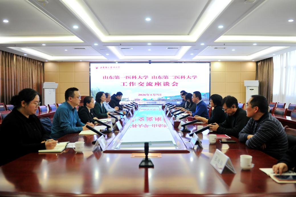 1月7日下午,山东第一医科大学临床与基础医学院(所)党委书记仲浩、医学信息与人工智能学院党委书记王晓艳等一行8人来校交流访问。基础医学院、临床医学院相关负责人会见来宾并座谈交流。
