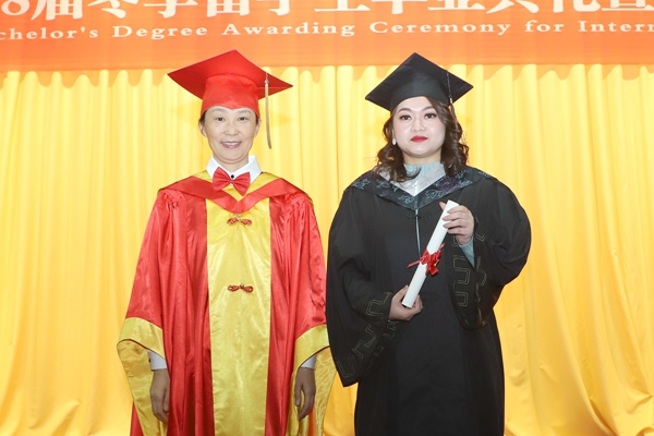 The chairman of the WFMU’ Degree Assessment Committee and the President of WFMU,Prof. Guan Ying updated thetassels and awarded the bachelor's degree certificates for the international students who have obtained a bachelor's degree.
