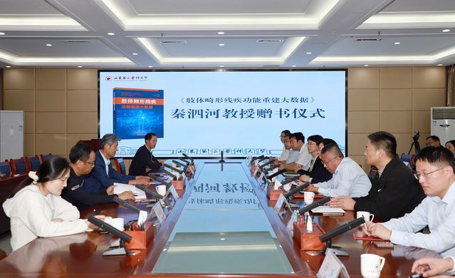 管英俊对秦泗河回到母校表示欢迎,对秦教授始终心系母校,关心和支持学校建设发展表示感谢。她指出,《肢体畸形残疾功能重建大数据》建成了以病例资料为中心的数据库,创立了国内外同行广泛认可的肢体自然重建理念与外科技术体系,是医者仁心、大医精诚的鲜活传承与生动实践。多年以来,秦教授在学校建立肢体畸形残障医学展览馆,在附属医院建立肢体残障功能重建研究所,全力助推学校高质量发展,充分体现了秦教授不忘师恩、反哺母校的赤子情怀。希望能与秦教授开展深度合作,共同为建设健康中国、守护人民健康贡献智慧力量。